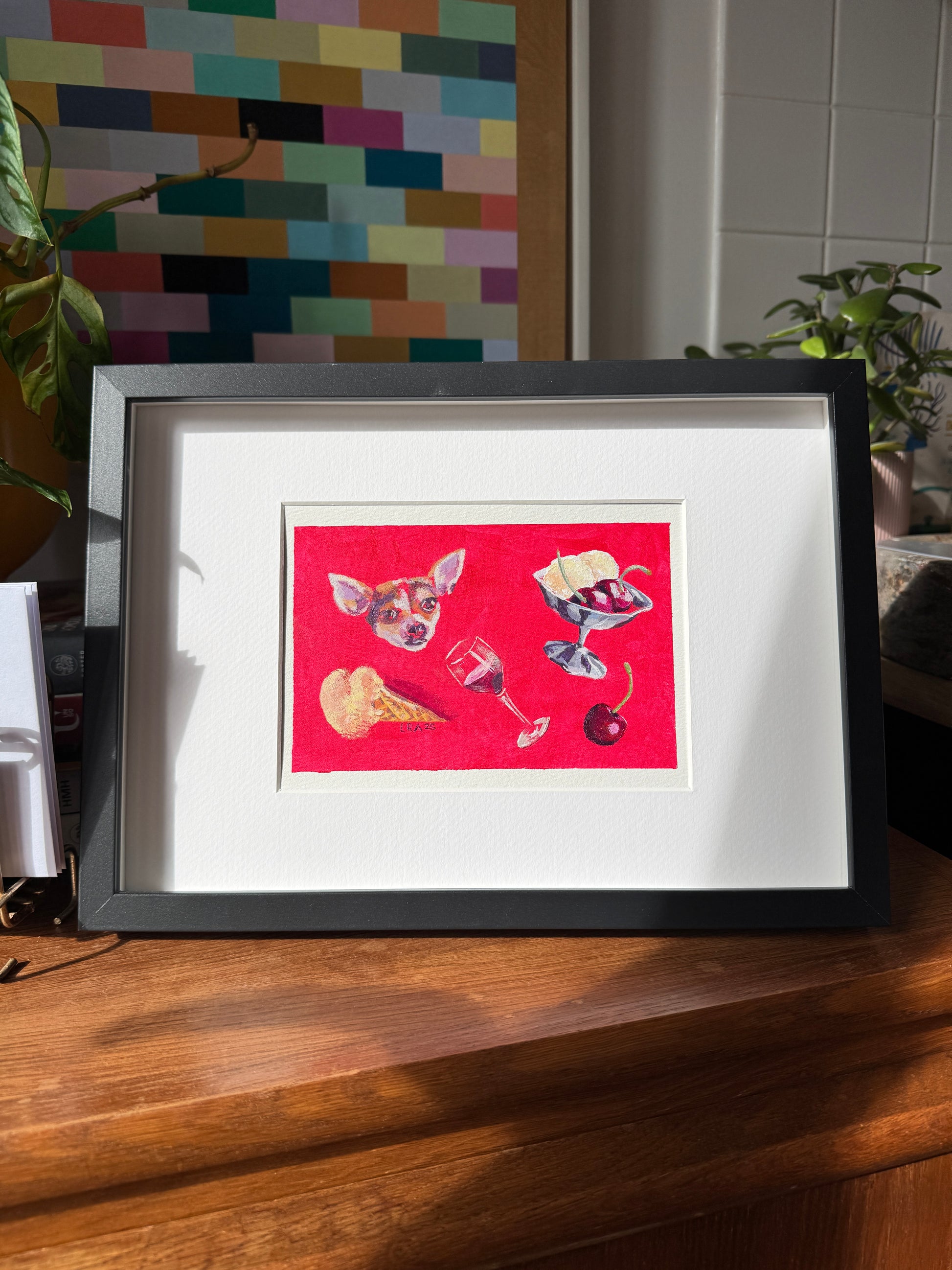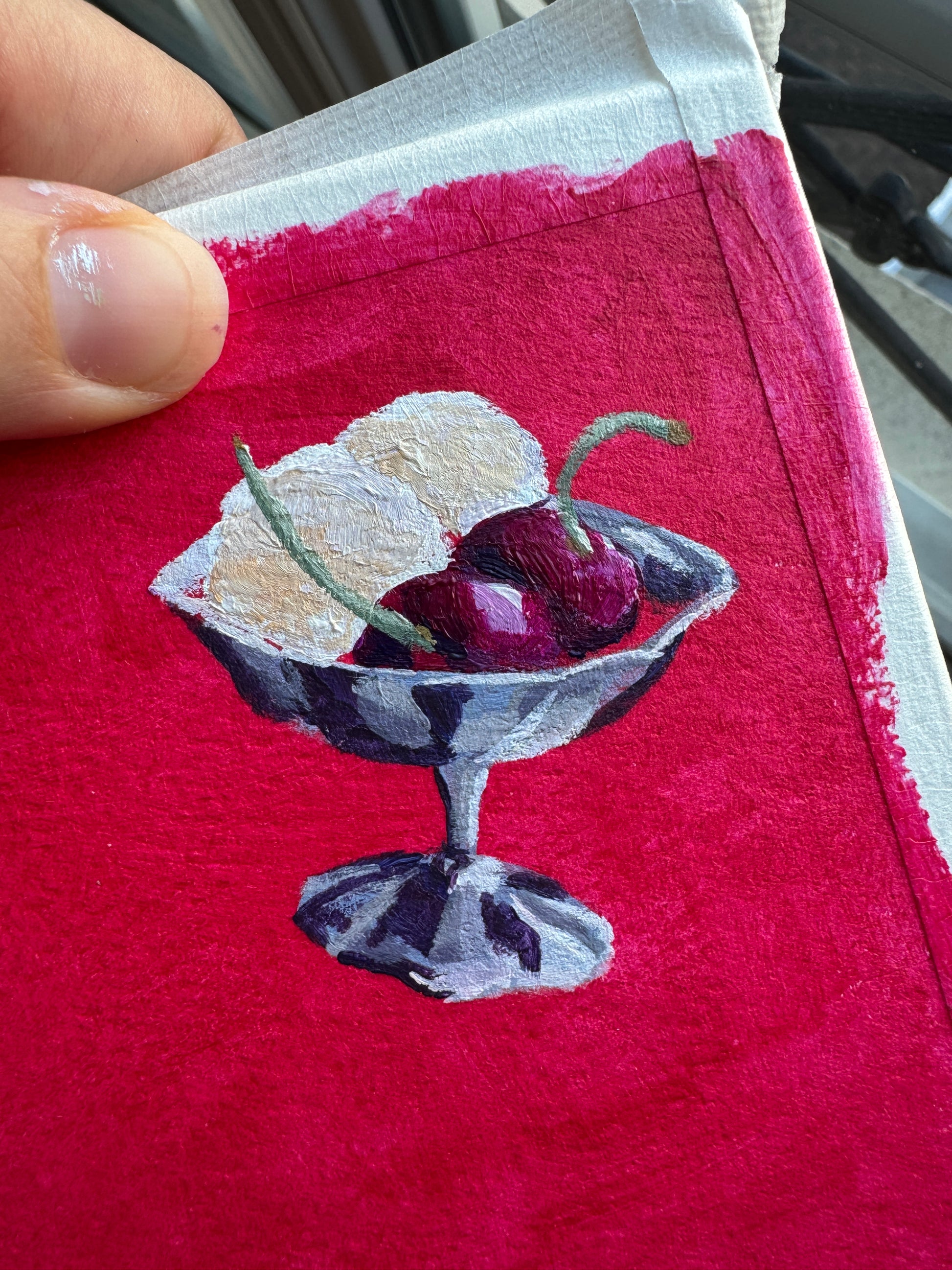 This summer I partnered with a boutique ice cream maker to make fun visuals for the location-theme ice creams. She scooped specialty flavors at a local wine bar while I live painted and we all soaked up peak summer atmosphere.