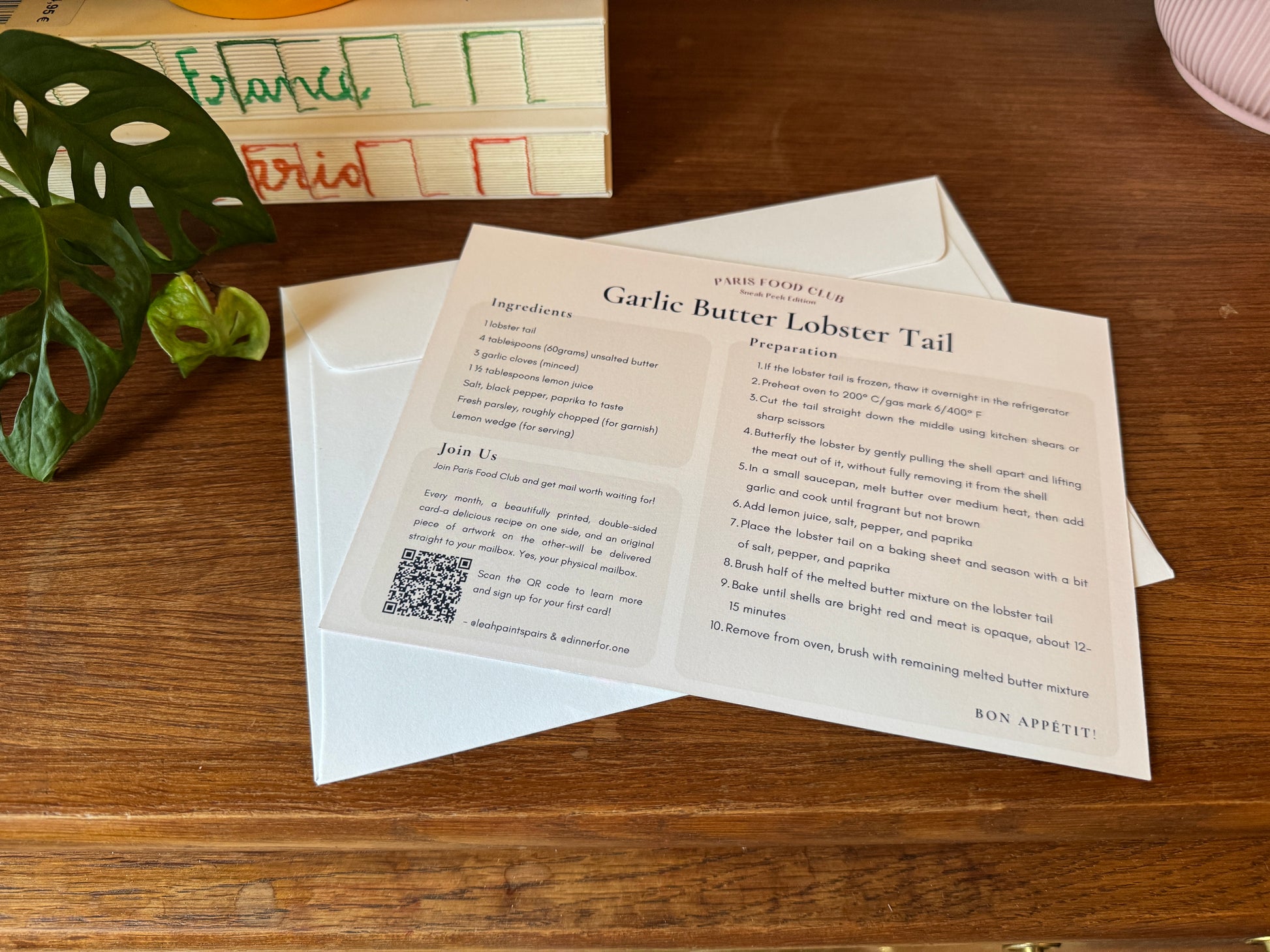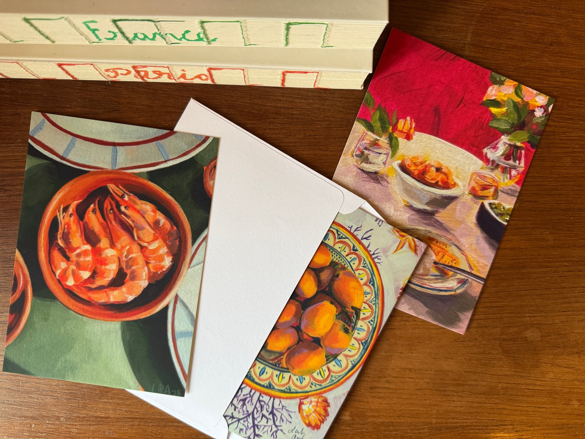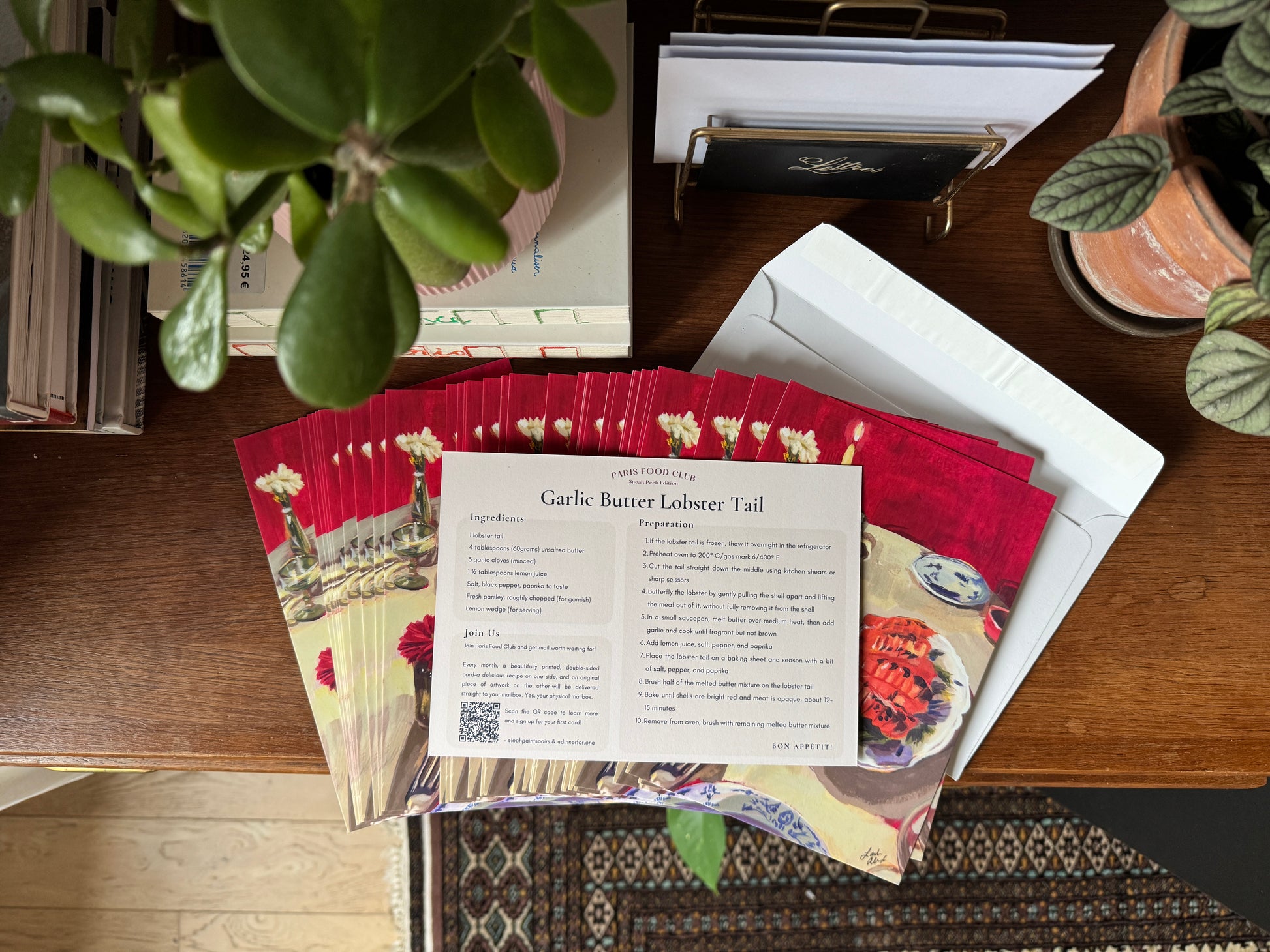 Every month: a hand-signed, A5 (5.5"x8") fine art print paired with a curated recipe and other notes from Paris.