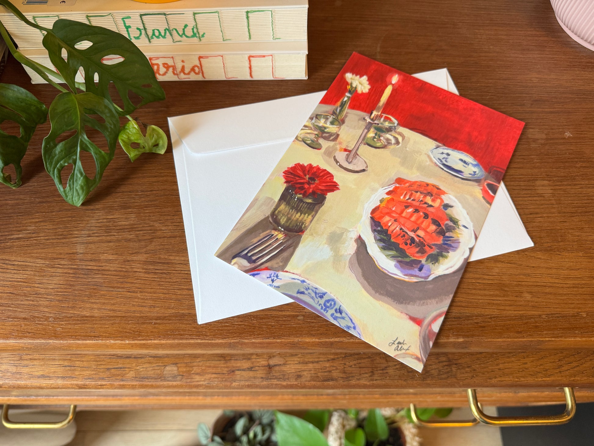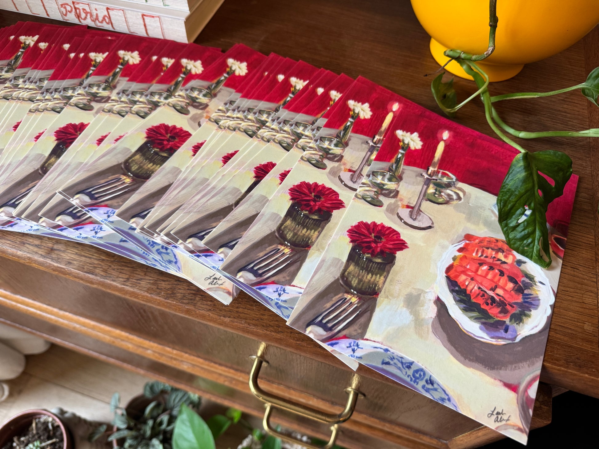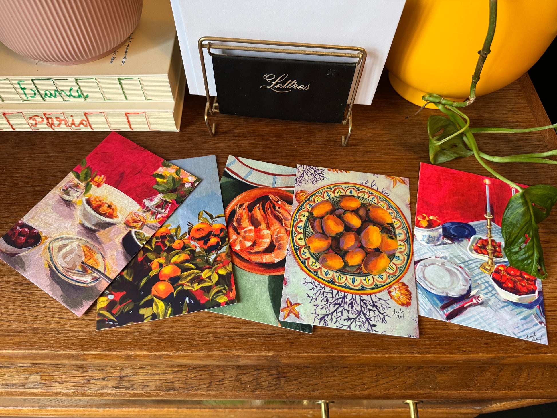Every month: a hand-signed, A5 (5.5"x8") fine art print paired with a curated recipe and other notes from Paris.