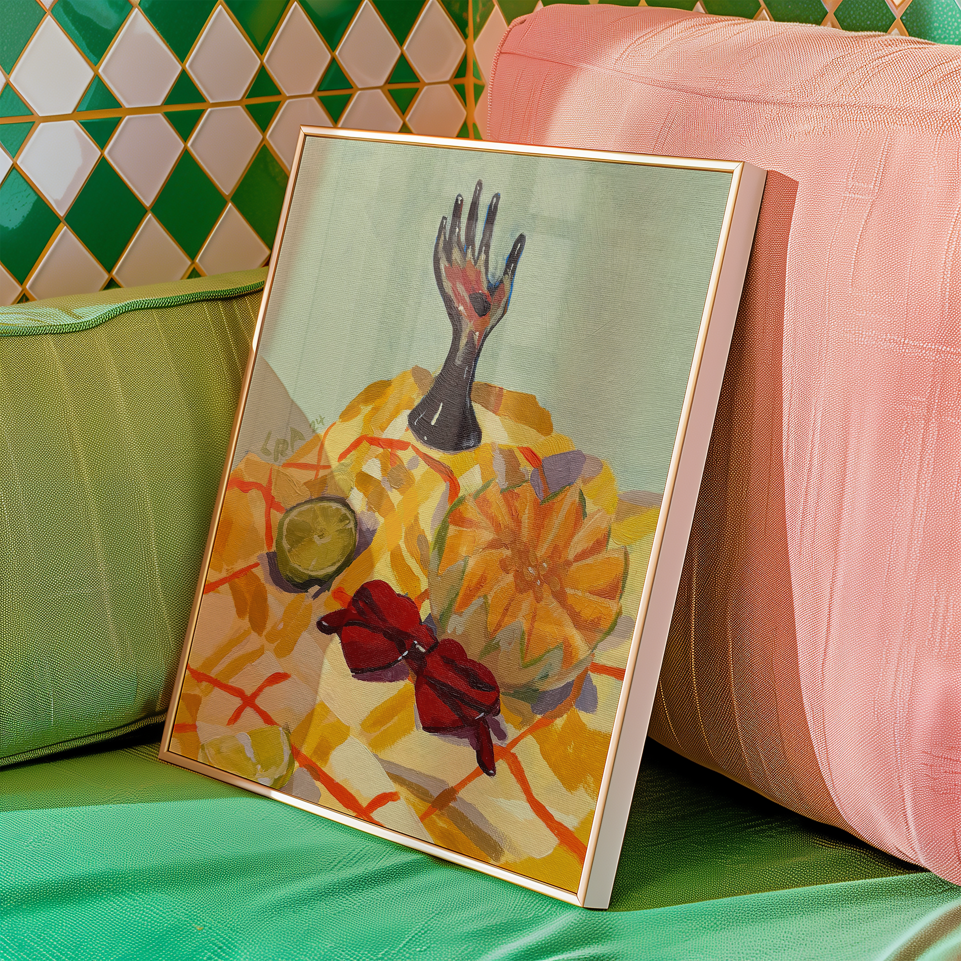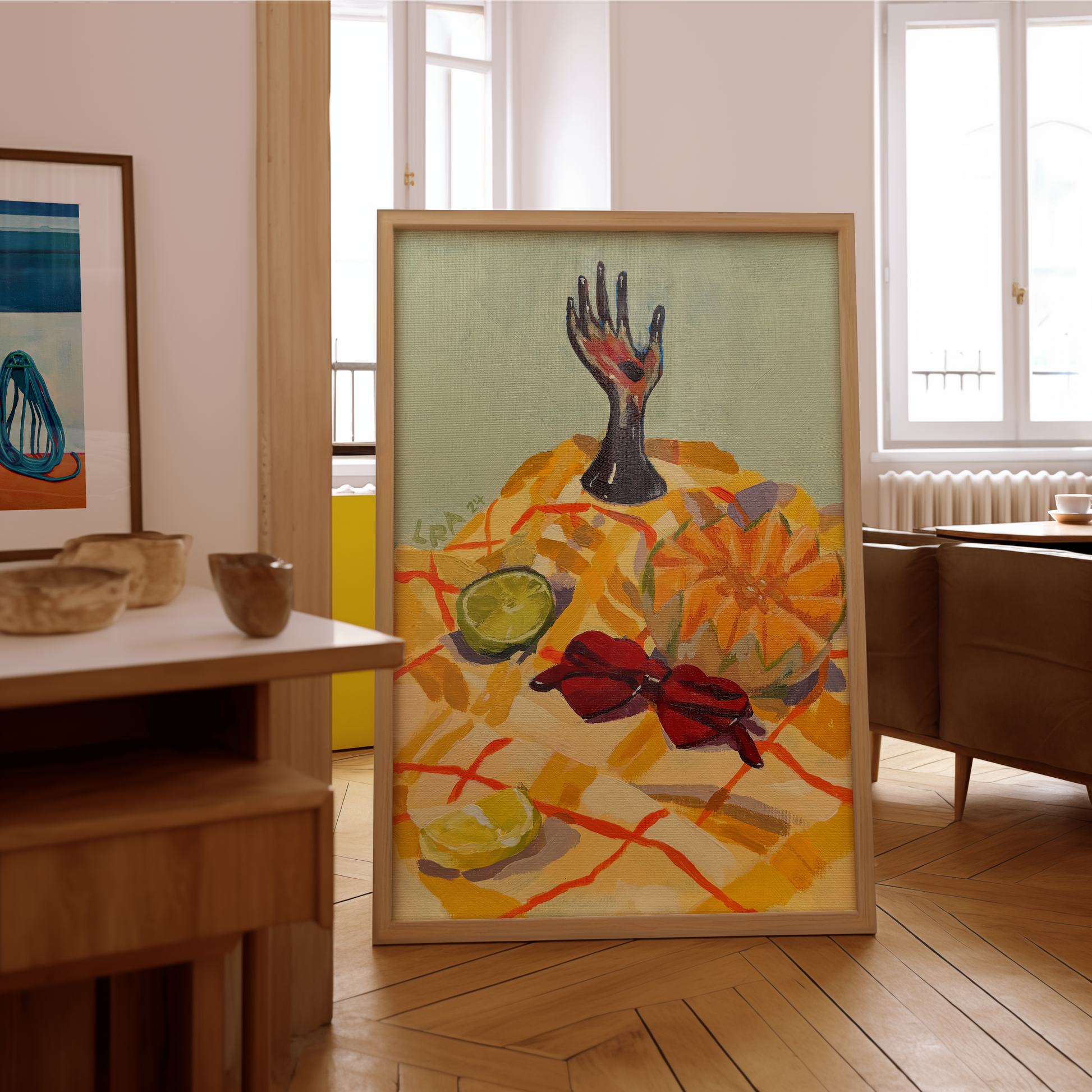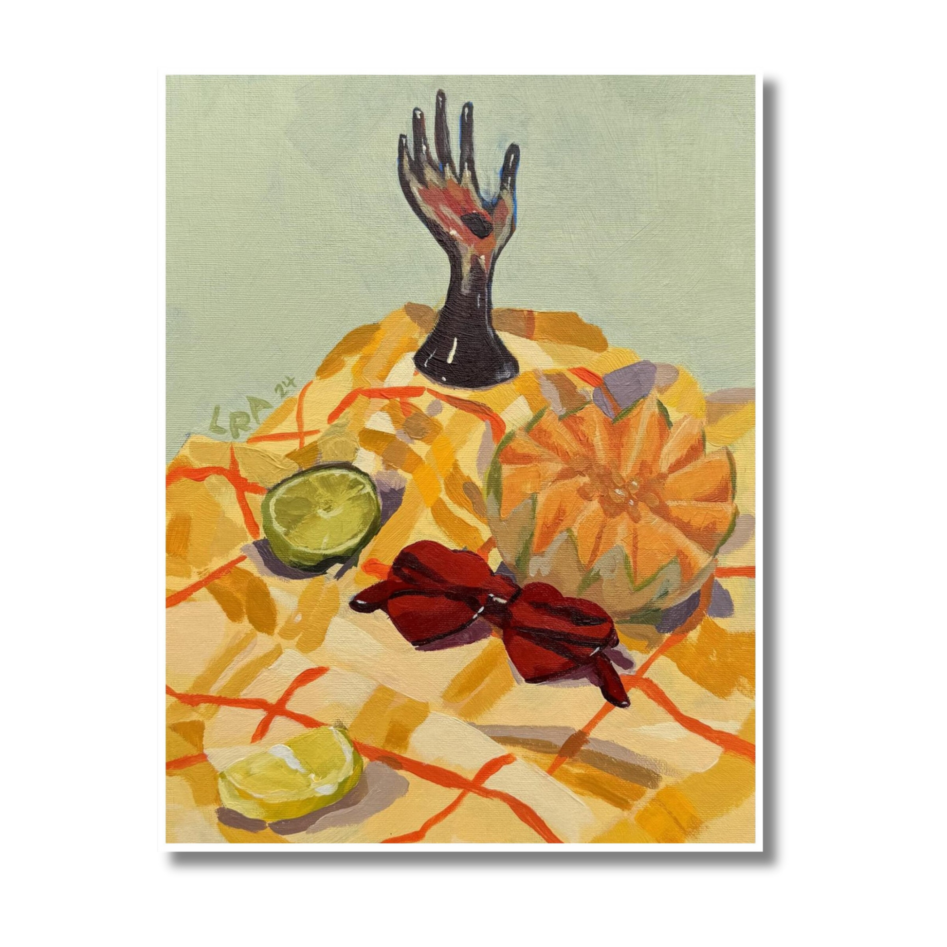 On a painting trip to the Loire Valley, I went to a thrift shop in a tiny village and found this hand ceramic that I couldn't let go of. It's become one of my favorite pieces. The original was painted in acrylic paint, available here as a print reproduction for more to enjoy.